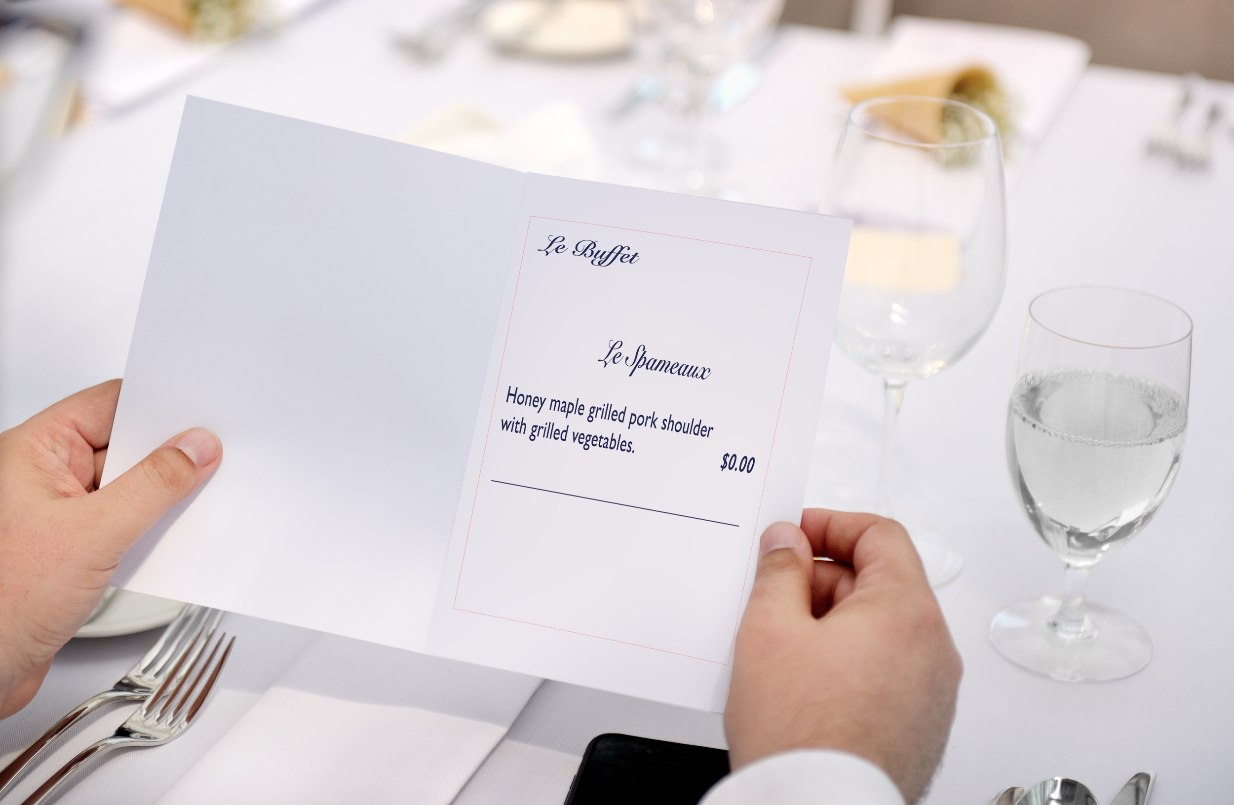 Once they arrive, the only thing that will be available on “Le Buffet” menu will be “The Spameaux”, a free meal made using spam as the main ingredient.